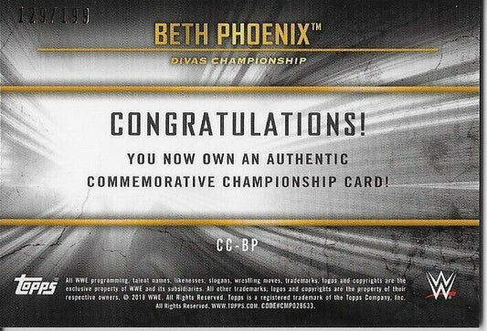 2018 Topps Wrestling WWE Championship Beth Phoenix Insert # CC-BP Card 129/199