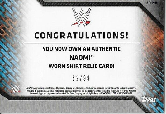 2018 Topps Womens Division WWE Naomi Shirt Relic Card 52/99 SR-NA