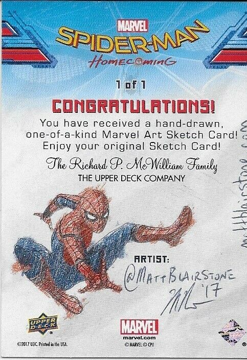 2017 Marvel Spider-Man Homecoming Artist Sketch By Matt Blairstone Card 1/1