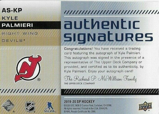 2019-20 Upper Deck SP Kyle Palmieri Autographed Authentic Signatures