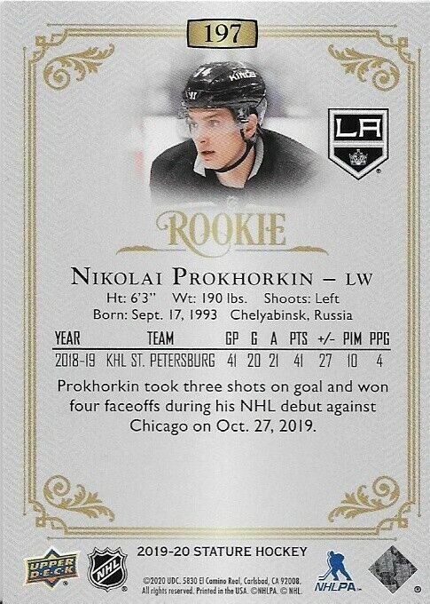 2019-20 Upper Deck Stature Nikolai Prokhorkin Rookie Green parallel 82/149