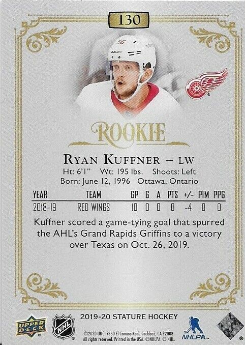 2019-20 Upper Deck Stature Ryan Kuffner Rookie card 118/399