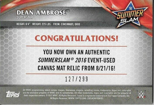 2017 Topps Summerslam WWE Dean Ambrose Mat Relic Card 127/299