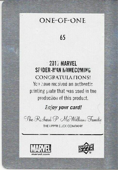 2017 Marvel Spider Man Homecoming One of One Printing Plate Mac Gargon Card #65