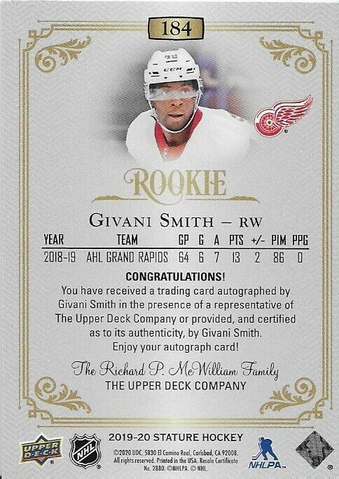 2019-20 Upper Deck Stature Givani Smith Autographed Card Green Parallel 28/85