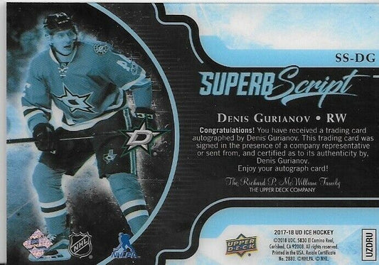 2017-18 Upper Deck Ice Denis Gurianov Superb Script Autograph Card 46/49