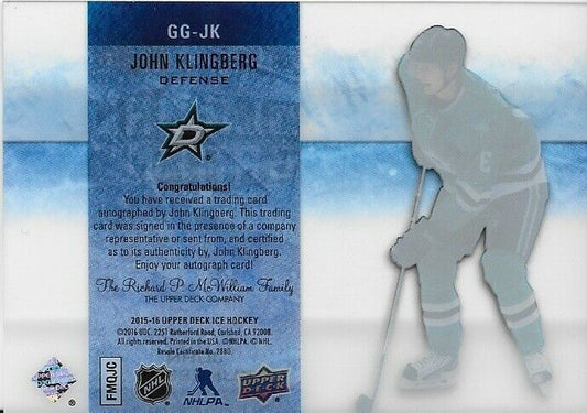 2015-16 Upper Deck Ice John Klingberg Glacial Graphs Autograph Card