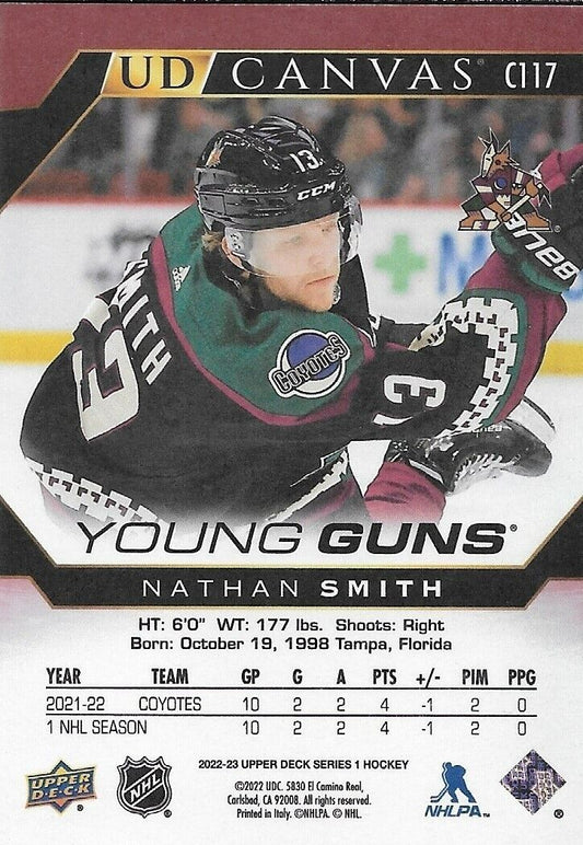 Signed Nathan Smith Young Guns 2022-23 UD Canvas Arizona Coyotes Rookie Card