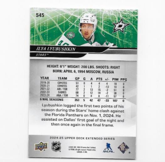 Ilya Lyubushkin 2024-25 Upper Deck Extended Exclusives Dllas Stars #035/100 #545