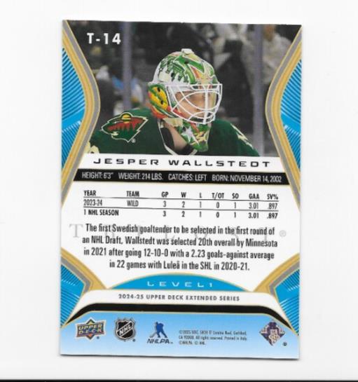 Jesper Wallstedt 2024-25 Upper Deck Extended Trilogy # 947/999 Rookie Premiers