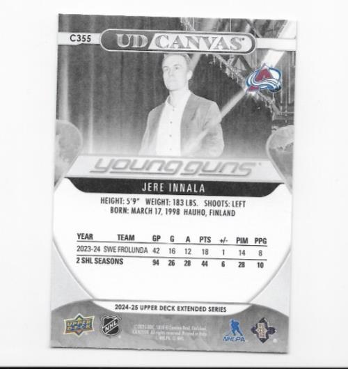 Jere Innala 2024-25 Upper Deck Extended Canvas Young Guns Black and White c355