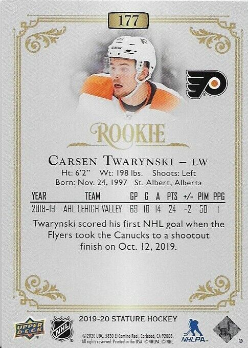 2019-20 Upper Deck Stature Carsen Twarynski Rookie Green parallel 44/149