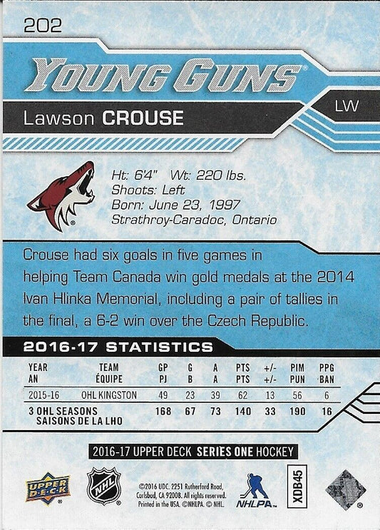 Signed Lawson Crouse Young Guns 2016-17 UD Arizona Coyotes Rookie Card