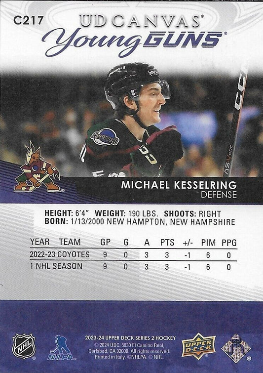 Signed Michael Kesselring UD Young Guns Canvas 23-24 Arizona Coyotes Rookie Card