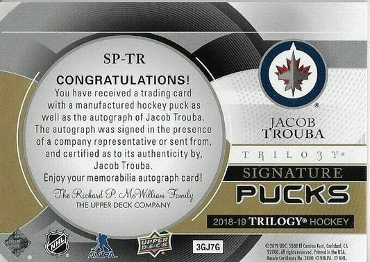 2019-20 Upper Deck Trilogy Jacob Truba Autographed Signature Puck