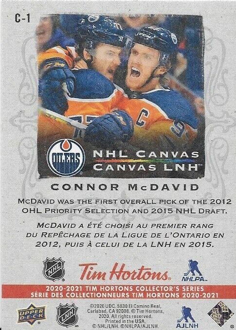 2020-21 UD Tim Horton's NHL Canvas Connor McDavid Insert Card
