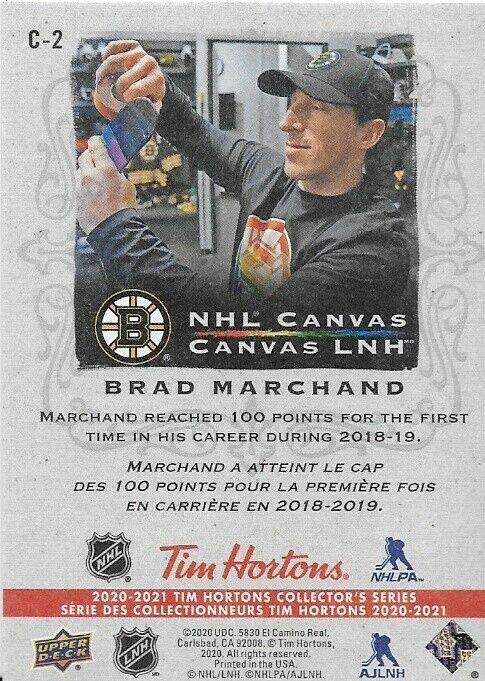 2020-21 UD Tim Horton's NHL Canvas Brad Marchand Insert Card