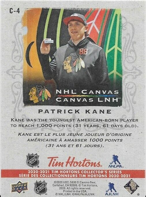 2020-21 UD Tim Horton's NHL Canvas Patrick Kane Insert Card