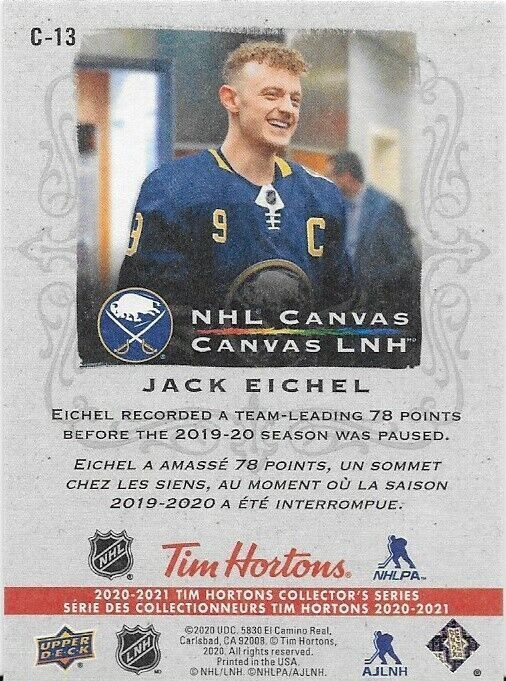 2020-21 UD Tim Horton's NHL Canvas Jack Eichel Insert Card