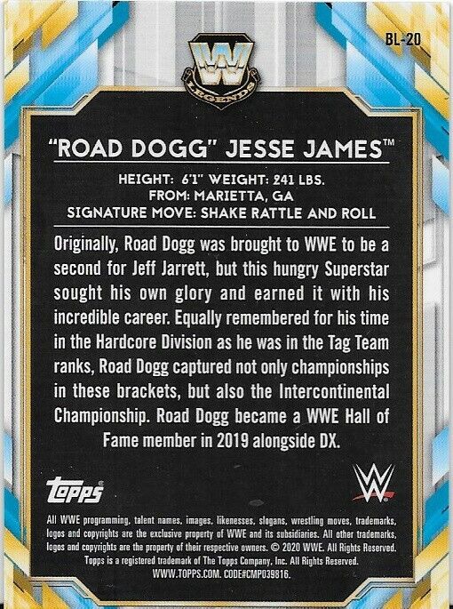 2020 Topps Chrome WWE Black Refractor Road Dogg Jesse James 10/10