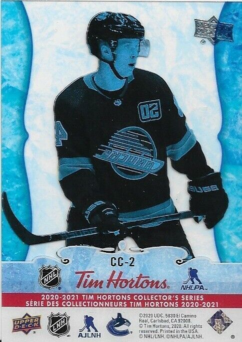 2020-21 UD Tim Horton's Clear Cut Phenoms Elias Pettersson Insert Card