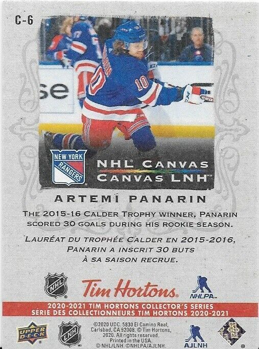 2020-21 UD Tim Horton's NHL Canvas Artemi Panarin Insert Card