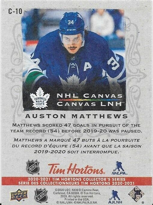 2020-21 UD Tim Horton's NHL Canvas Auston Matthews Insert Card