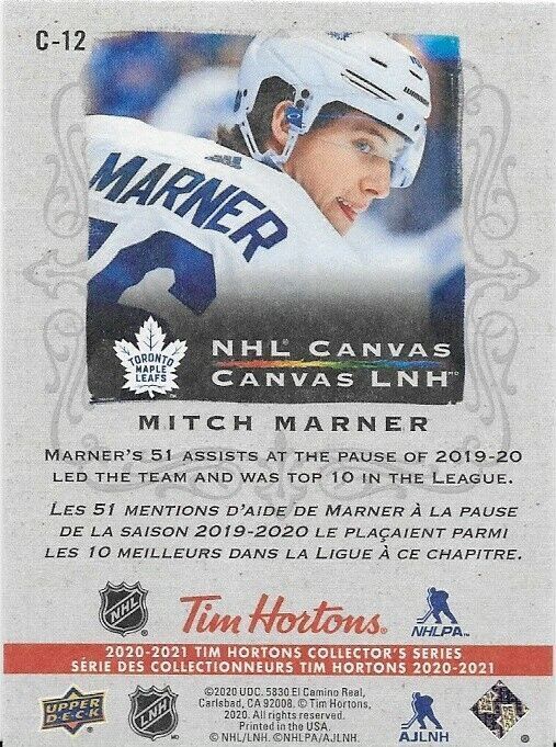 2020-21 UD Tim Horton's NHL Canvas Mitch Marner Insert Card