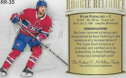 2019-20 Upper Deck Stature Ryan Poehling Rookie Reliance Autographed Card
