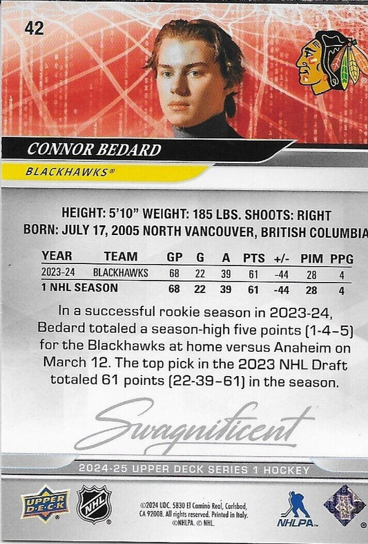 2024-25 Upper Deck NHL Series One Connor Bedard Swagnificent Card #42