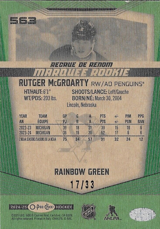 2024-25 O-Pee-Chee Hockey Green Rainbow Marquee RC Rutger McGroarty 17/33 563