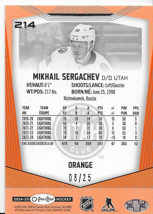 2024-25 O-Pee-Chee Mikhail Segachev Tampa Bay Lightning Orange 08/25 214
