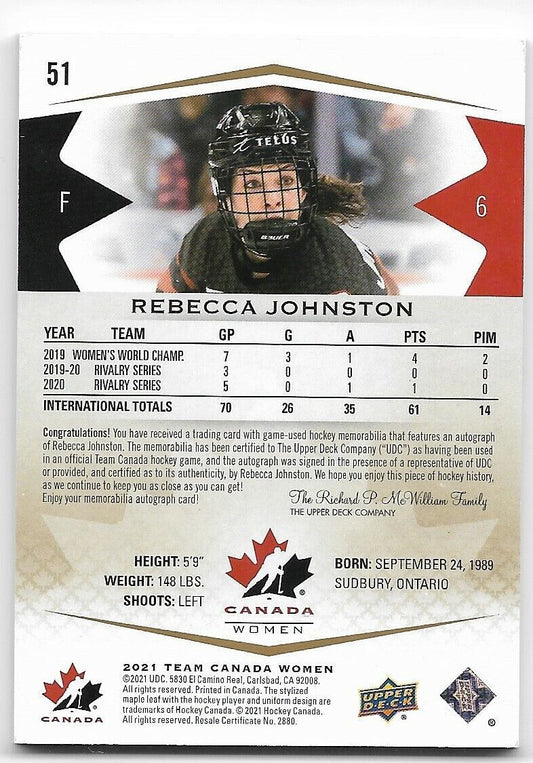 2021 Team Canada Rebecca Johnston auto patch 135/199