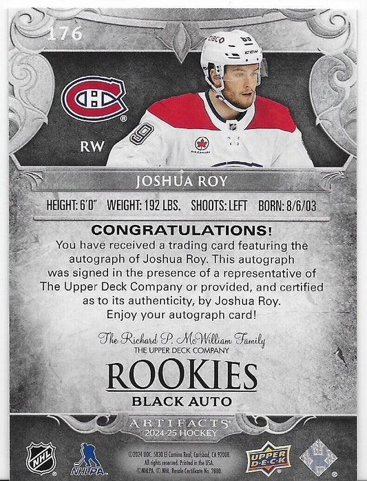 2024-25 Upper Deck Artifacts Hockey Montreal Canadiens Joshua Roy Black Auto 2/5