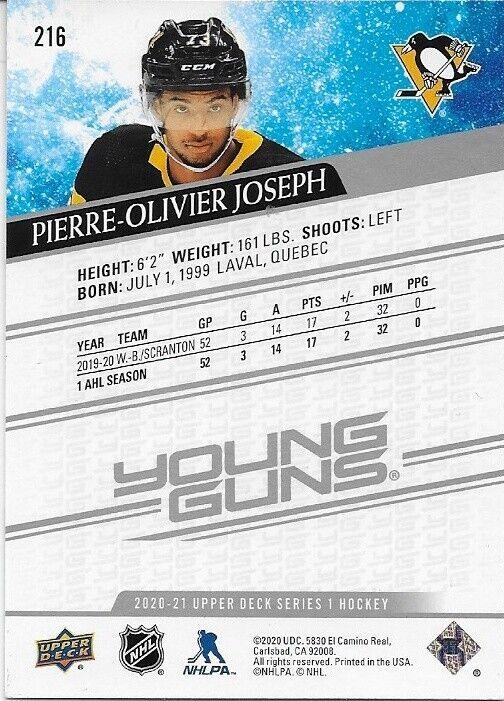 Auto. 20-21 UD Pittsburgh Penguins Young Guns Pierre Olivier Joseph Rookie Card