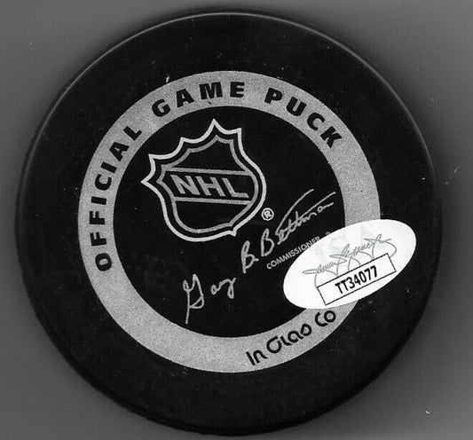 Auto. Chicago Blackhawks Glenn Hall Official Game Puck with JSA Authentication