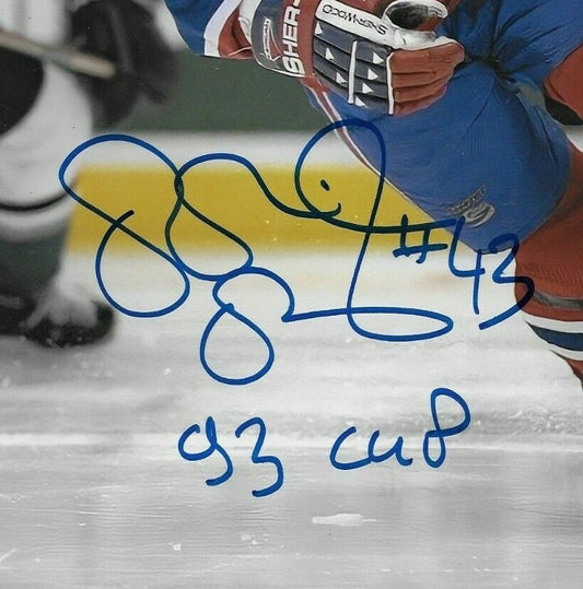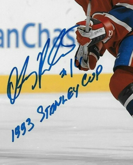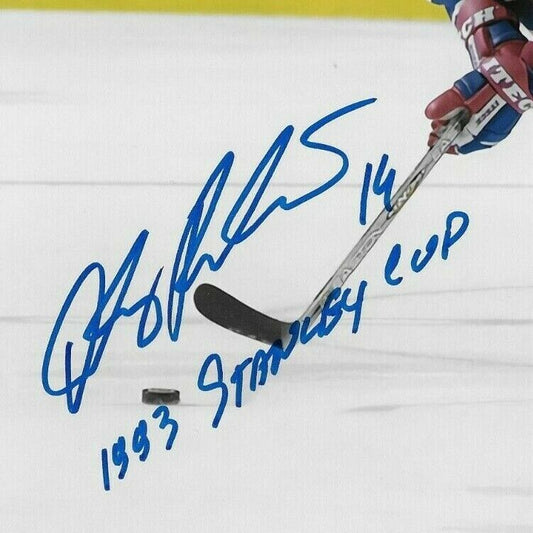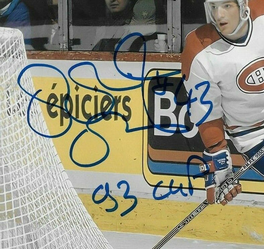 Auto. Montreal Canadiens Patrice Brisebois 8x10 Photo #2 w Inscription 93 Cup