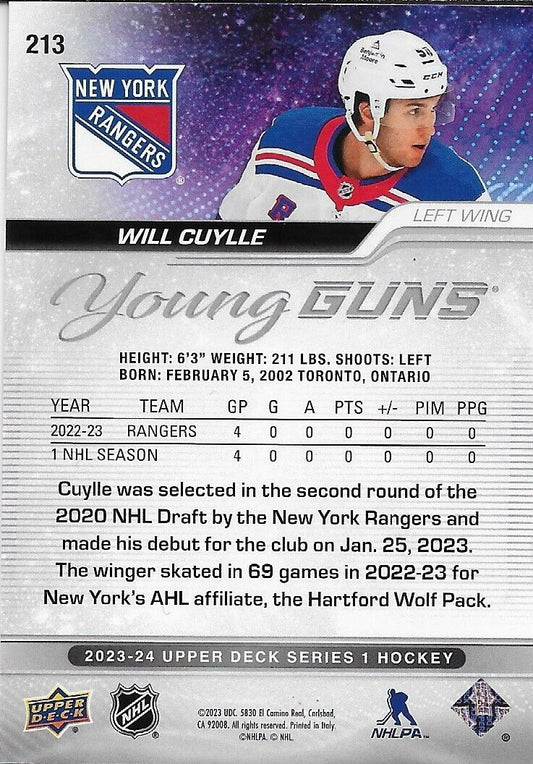Signed 2023-24 UD Will Cuylle Young Guns New York Rangers Rookie Card