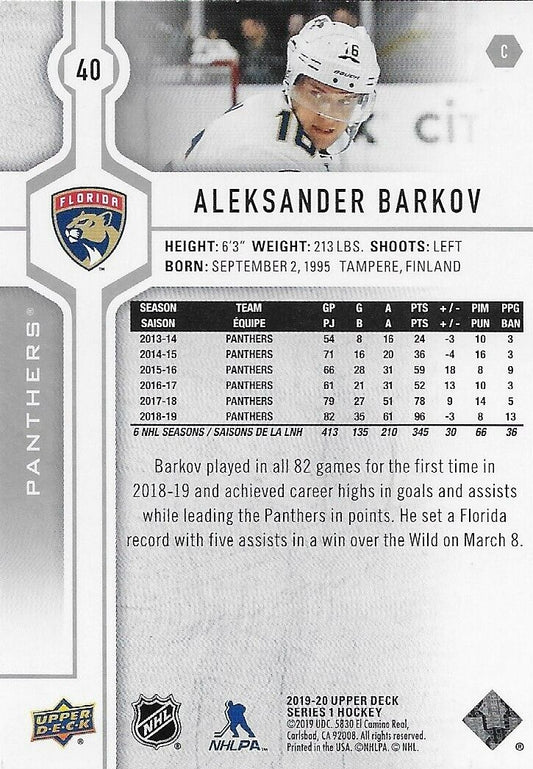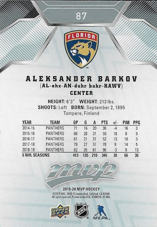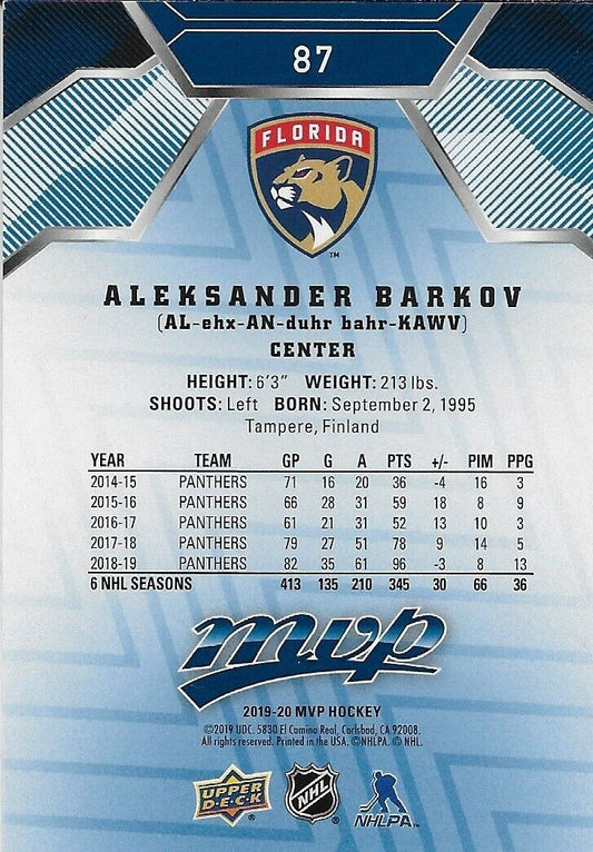 Signed Aleksander Barkov 2019/20 UD MVP Florida Panthers Card #1 Original
