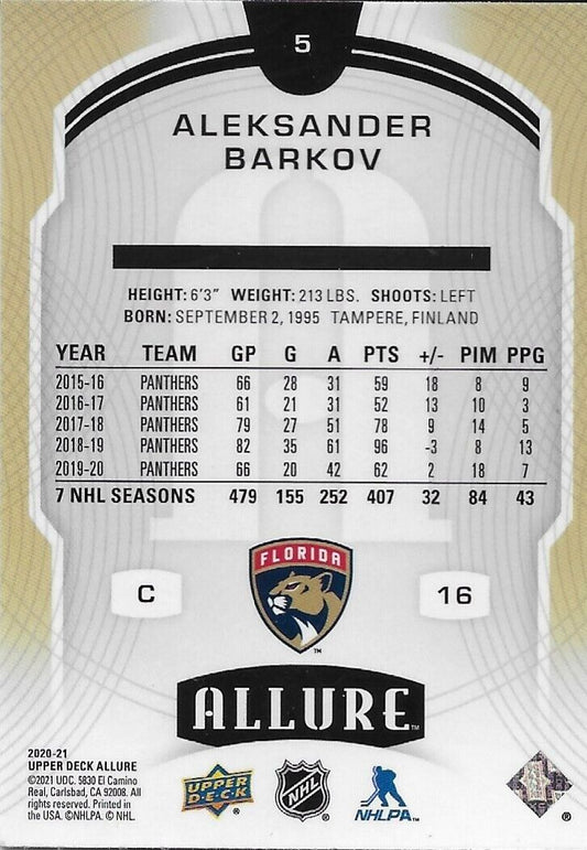 Signed Aleksander Barkov 2020/21 UD Allure Florida Panthers Card #4 Original