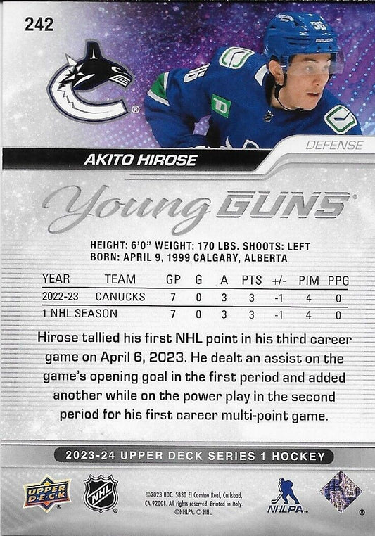 Signed Akito Hirose Young Guns 2023-24 UD Vancouver Canucks Rookie Card