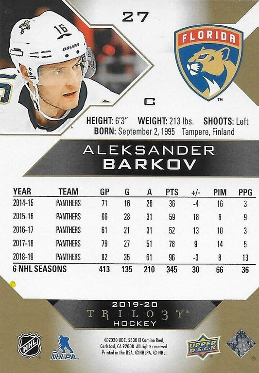 Signed Aleksander Barkov 2019/20 UD Trilogy Florida Panthers Card #6 Original