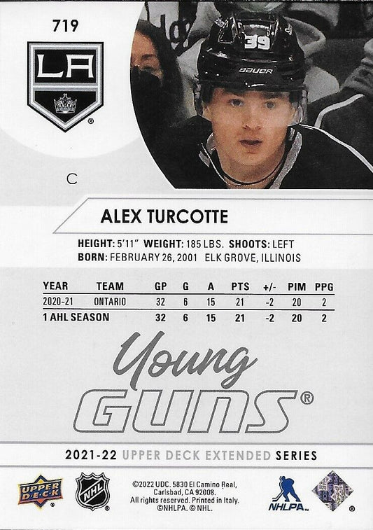 Signed Alex Turcotte 2021-22 UD Young Guns Los Angeles Kings Rookie Card