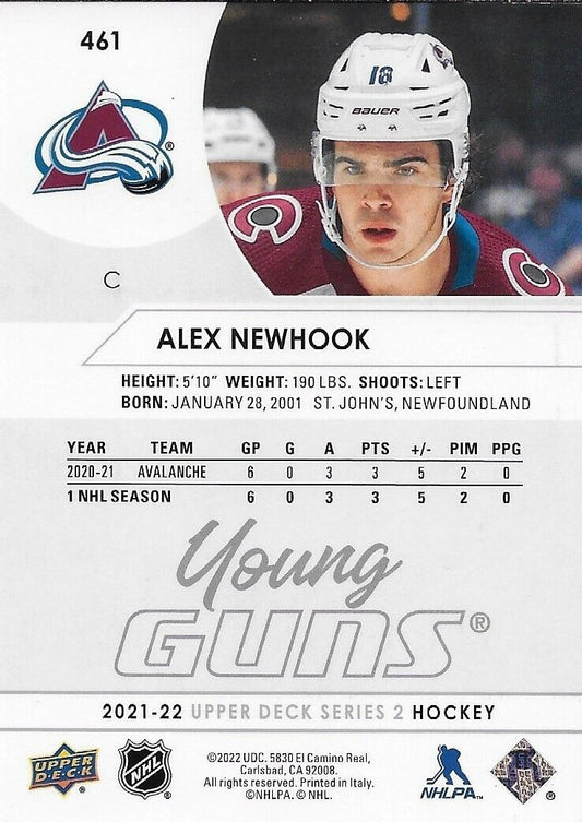 Signed Alex Newhook Young Guns 21-22 UD Colorado Avalanche Rookie Card Original