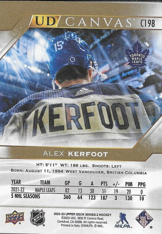 Signed Alex Kerfoot UD Canvas 2022-23 Toronto Maple Leafs Card Original
