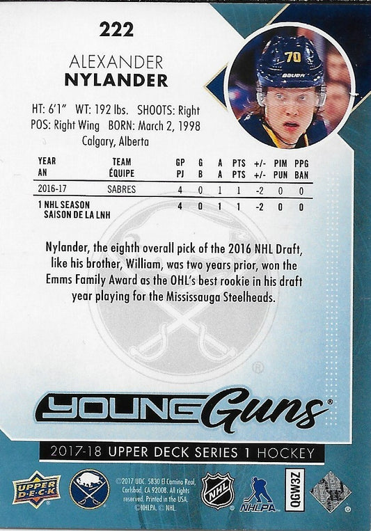 Signed Alexander Nylander 2017-18 UD Buffalo Sabres Young Guns Rookie Card