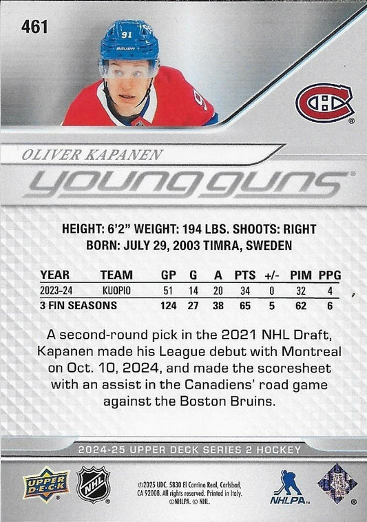 Signed Oliver Kapanen Young Guns 2024-25 UD Montreal Canadiens Rookie Card #2