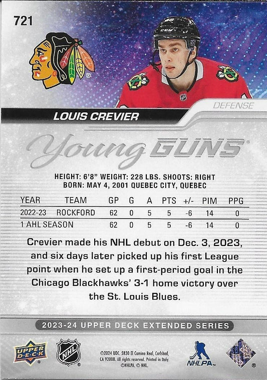 Signed Louis Crevier 23/24 UD Young Guns Chicago Blackhawks Rookie Card