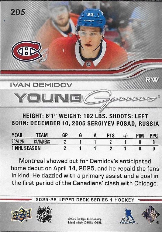 Signed Ivan Demidov Young Guns 25-26 UD Montreal Canadiens Rookie Card Original