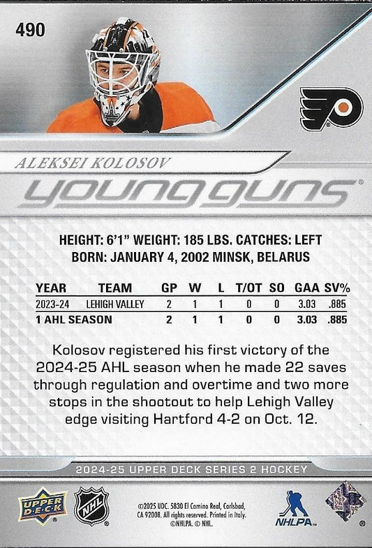 Signed Aleksei Kolosov 2024-25 UD Young Guns Philadelphia Flyers Rookie Card